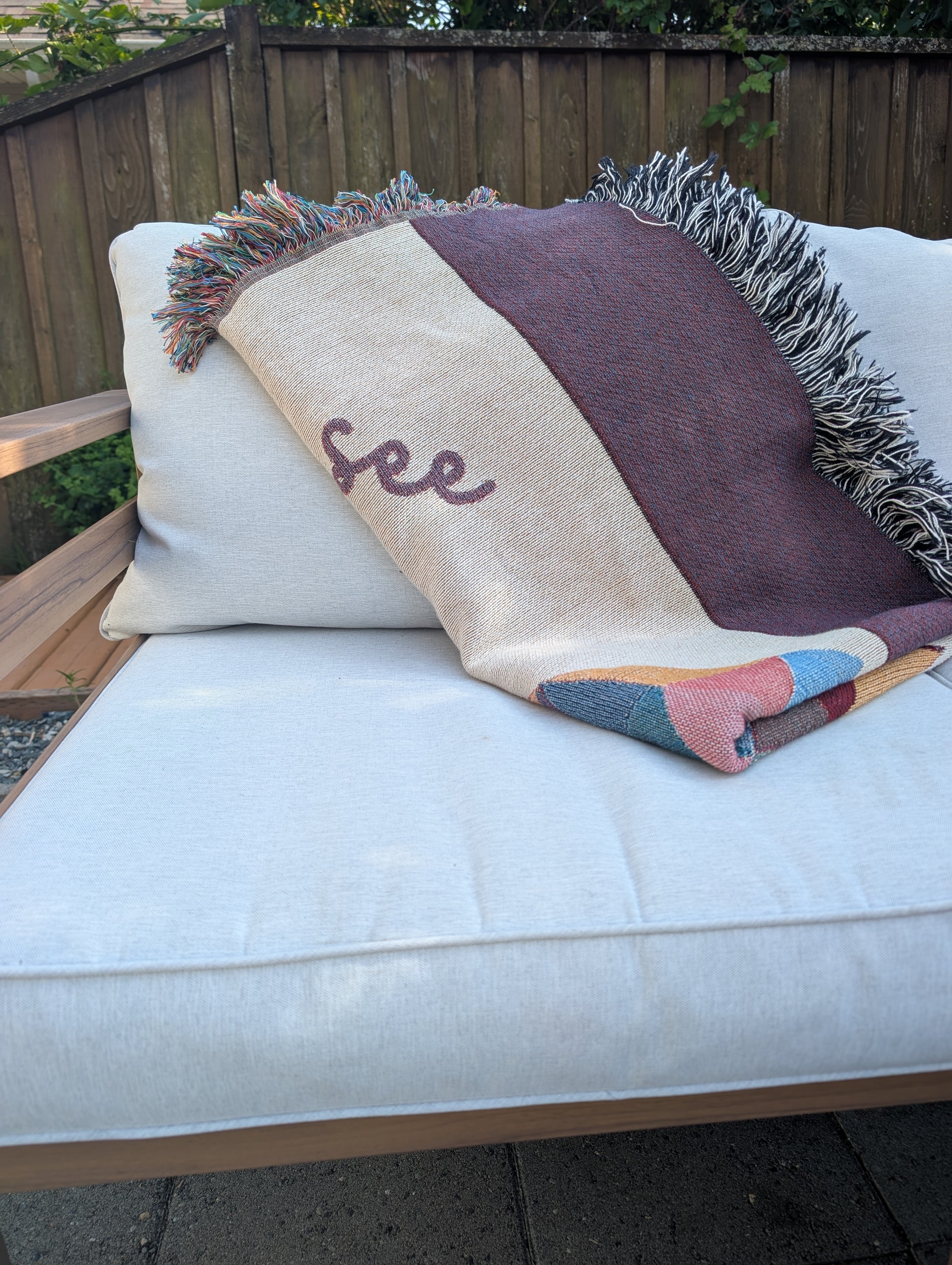 Woven in soft, neutral tones, this everyday throw is designed to feel at home wherever life happens—draped over the couch, laid out on the grass, or tucked around your shoulders at the end of a long day. The See–Think–Feel–Need blanket offers gentle warmth and quiet presence, encouraging intentional pauses and meaningful connection in the flow of daily life.